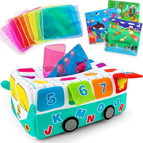 Amazon Com Beetoy Baby Tissue Box Toy Sensory Tissue Box Montessori Toys For Infants Babies 6 12 Months Baby Pull Toys With High Contrast Scarves Crinkle Paper For 1 Year Old Boy Girl Preschool